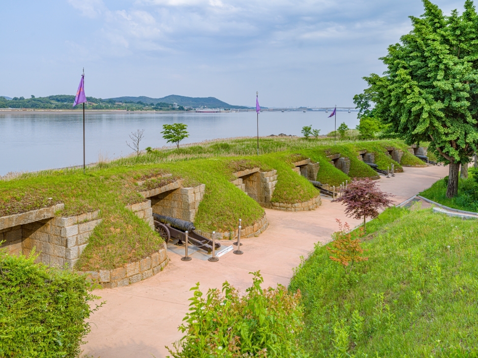 Deokjinjin Fortress was the scene of fierce battles that took place during Byeonginyangyo (the French invasion in 1866) and Shinmiyangyo (the American invasion in 1871). The battlements and gatehouse of Deokjinjin that had all been destroyed during Sinmiyangyo were restored in 1977. At the Namjangpodae Battery, cannons used by the Joseon military have been reproduced and installed for display.