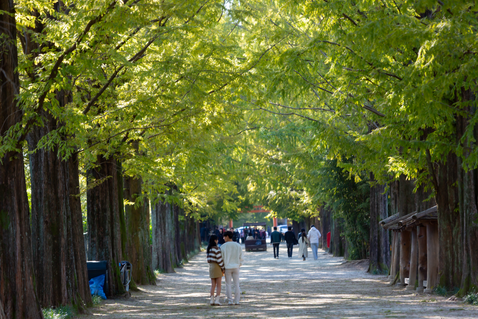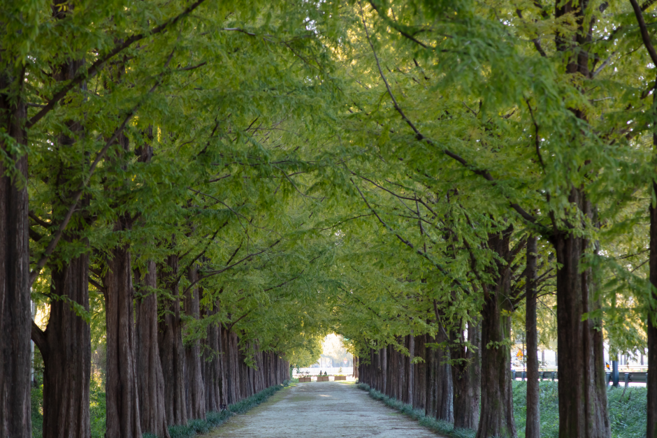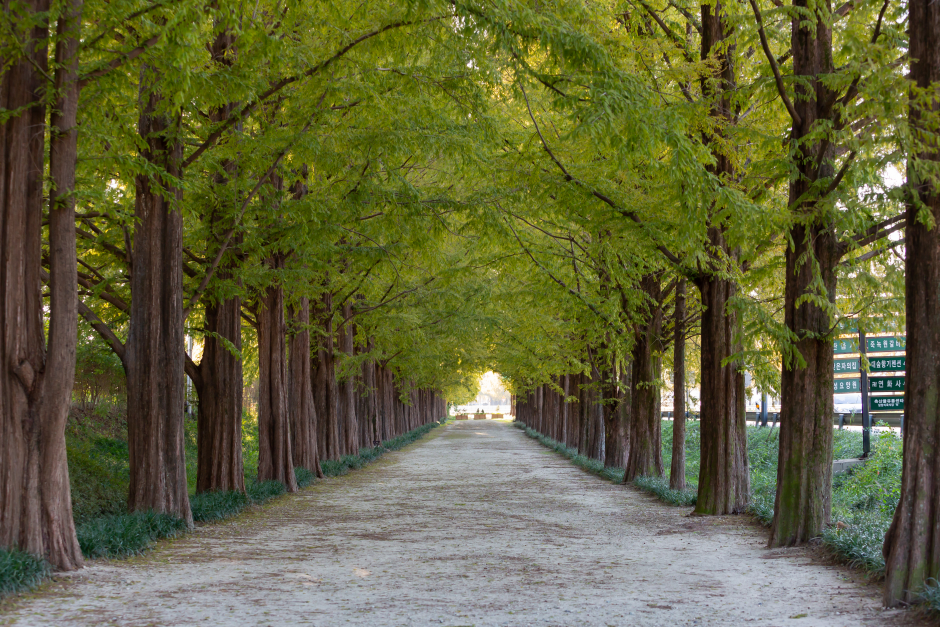 Damyang Metasequoia-lined Road is one of Korea's most beautiful paths. Metasequoia trees were planted along the street in the early 1970s by the Ministry of Internal Affairs after National Road 24 was rebuilt. At that time, the saplings were only 3 to 4 years old and their branches stretched sparsely out into the sky; now, the trees have grown so high that they seem to block out the sun. Thanks to these stately trees, in 2002 the Korea Forest Service selected the boulevard as one of the most beautiful roads in Korea. The 8.5-kilometer-long boulevard is one of the most popular driving routes in Korea, especially during summer when the trees’ lush green leaves are at their height of beauty.