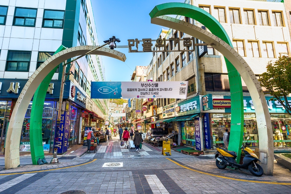 The current marketplace of Gukje Market first formed after the liberation of Korea from the Japanese administration when people gathered to trade overseas products left by the Japanese and brought in by Koreans who came back from abroad. Following the Korean War, refugees who fled to Busan set up stalls in order to make a living by selling smuggled or imported products, which developed into Gukje Market (gukje meaning "international" in Korean) of today. Gukje Market is one of Korea’s largest markets and a testament to Korea's modern history. The market is divided into two wings, and first-timers to the market are advised to be careful not to get lost in the maze-like alleys and halls.
