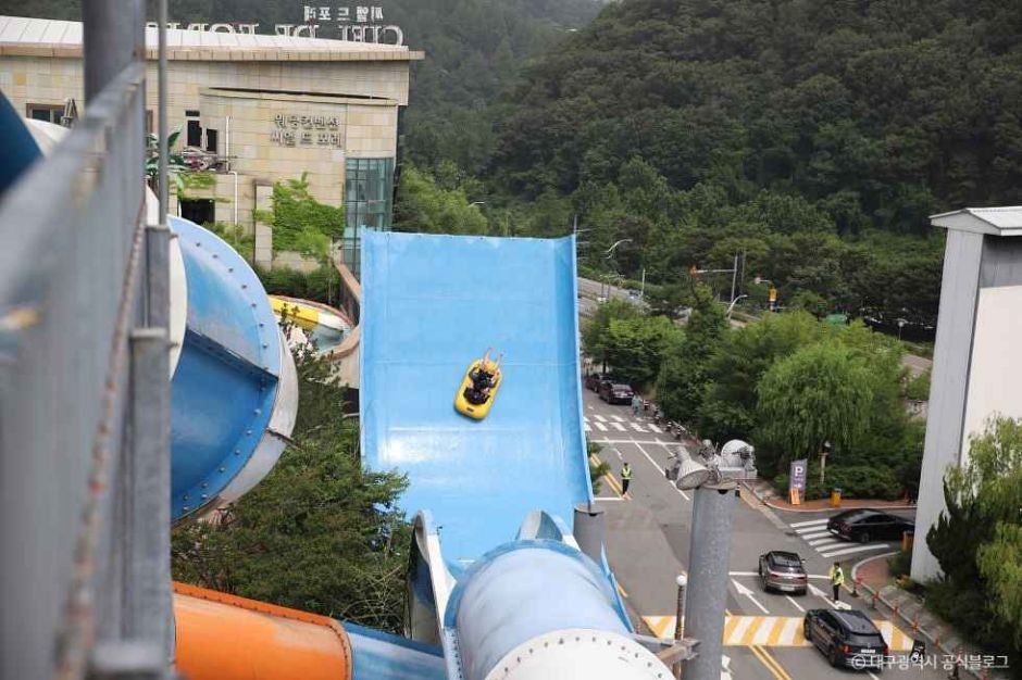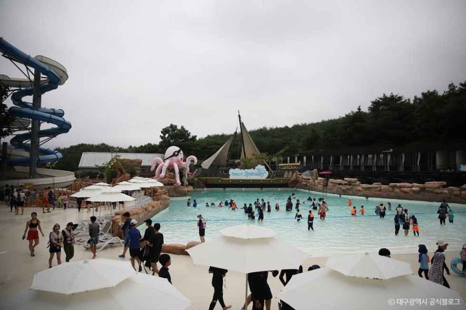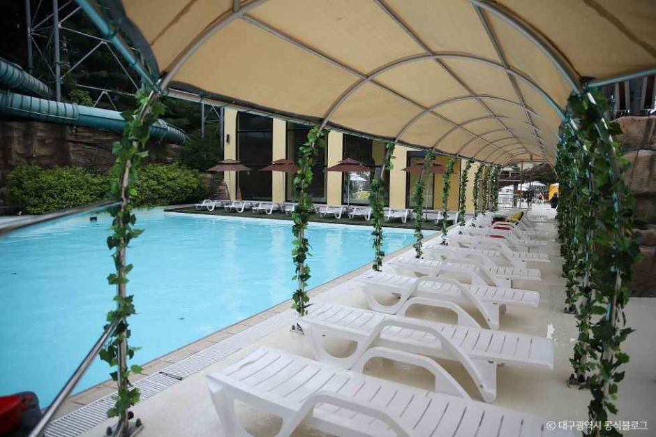 Daegu Spa Valley is a year-round water park offering various water attractions and hot springs. It features a 250m lazy river pool, Speed Slides, Jungle Aqua, hot spring saunas, Aqua Play, and both indoor and outdoor water playgrounds. There are water park experience programs available for day trips or overnight stays.