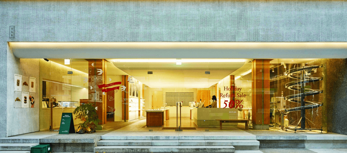 Let’s visit an eyewear store with a younger vibe this time. This store is located in a completely different neighborhood. It’s in Seongsu-dong Street, currently one of the trendiest areas in Seoul. This place is bustling with brand showrooms, select shops, cafés, and restaurants, attracting not only the domestic Millennials and Gen Z but also young tourists from abroad.