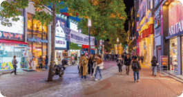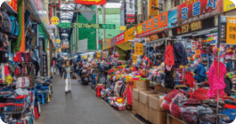Daegu, at the heart of the Gyeongsang-do region, is a city with diverse attractions. Explore the preserved Modern Alley from the late 19th century to the early 20th century, the iconic downtown area Dongseong-ro Street, the panoramic view of Palgongsan from Palgongsan Sky Garden, and the cultural site Kim Kwangseok-gil Street, which showcases the life of renowned folk singer Kim Kwang-seok. Dongseong-ro Street, the landmark of Daegu, is a bustling shopping district with five major department stores, brand shops, and vintage stores. The recently renovated Hyundai Daegu hosts frequent pop-up stores of the latest famous brands. Regarded as one of the top three traditional markets in the country, Seomun Market boasts a vast array of shops selling hanboks (traditional Korean clothing) and a variety of fabrics. The vibrant night market that opens after the market’s regular hours is also a popular attraction.