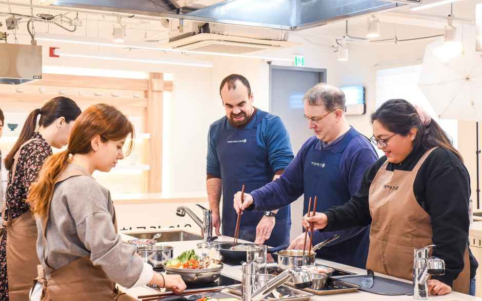 - Ongoing programs: Making popular Korean dishes, vegetarian dishes, and snack foods (kimchi, bulgogi, japchae, bibimbap, Korean-style fried chicken, haemul pajeon, budaejjigae, jjajangmyeon, and more), team-building cooking class