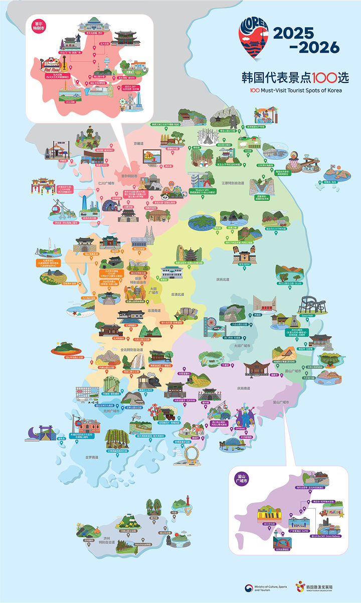 韩国旅游100选是文化体育观光部和韩国旅游发展局每两年评选一次并加以宣传的韩国人必访旅游景点,
