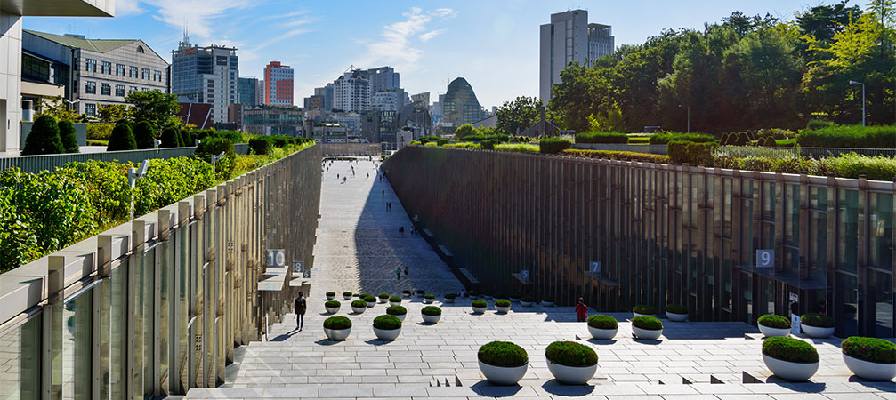 The first women’s university in Korea. The underground building was designed by world-renowned architect Dominique Perrault. The campus is surrounded by many restaurants and shops that appeal to the youth.