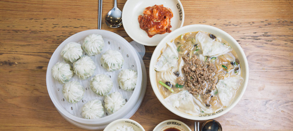 Myeongdong Kyoja has a strong claim to being the most famous restaurant in the entirety of Myeongdong. It is a restaurant specializing in noodles, most famous for its noodle soup and mandu. Noodle soup, “kalguksu” in Korean, is a traditional dish made by slicing dough into long, thin strips. The best way to enjoy it is to eat it with Myeongdong Kyoja’s famous kimchi. Note that additional bowls of steamed rice can be ordered free of charge if you order noodle soup.