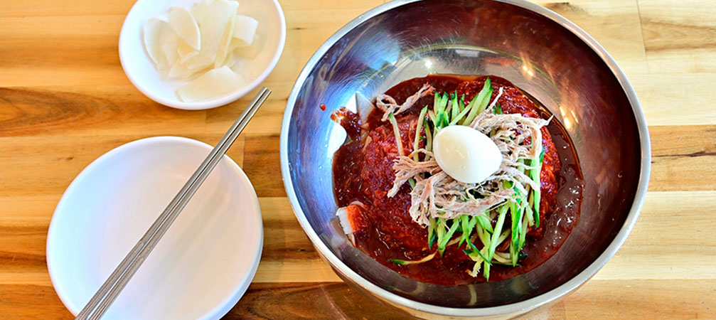 Milmyeon (wheat noodles) is a local Busan dish characterized by noodles mixed with wheat flour and other ingredients like starch powder, and savory broth full of flavor made with beef and various herbal medicines. Offerd menu options consist only of milmyeon and dumplings, but the milmyeon is so delicious that it is considered one of the top three milmyeon noodles in Busan. You can choose between milmyeon and bibim milmyeon (spicy wheat noodles) mixed with seasoning sauce.