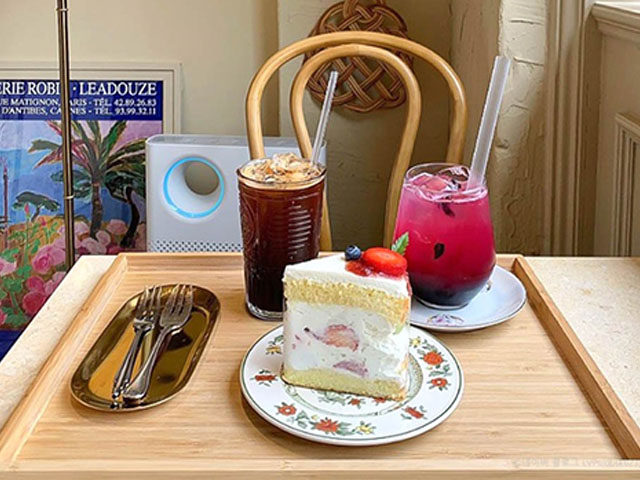 Located on Bamnidan Street, Alice's Cakery is a café specializing in rice-flour cakes. Sunlight streams through large windows, complementing the warm wood tones and vintage décor to create a cozy atmosphere. The display case features different cakes each day, with the daily lineup updated on Instagram.