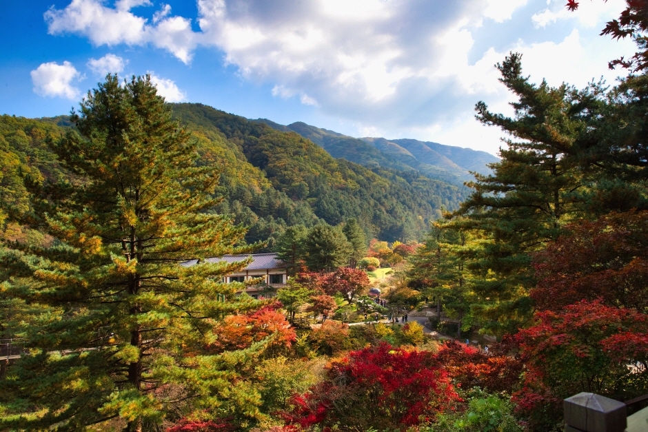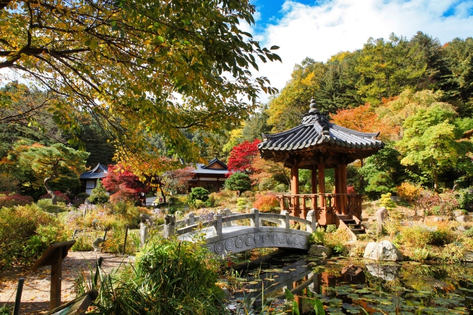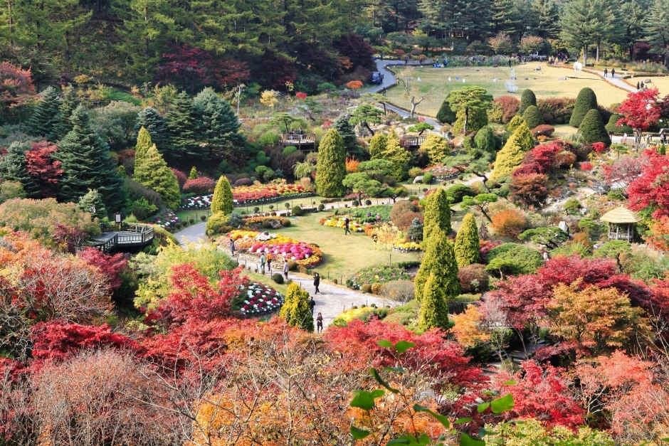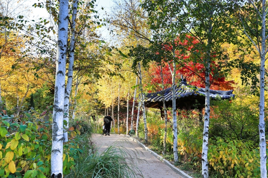 The Garden of Morning Calm, nestled against the splendid backdrop of Chungnyeongsan Mountain, is a horticultural haven that blends the essence of Korean beauty with a diversity of themed gardens. Designed by Professor Han Sang-kyeong from Sahmyook University, this arboretum, which opened in May 1996, offers a tranquil retreat with forest paths and a dense pine nut grove for those escaping the bustle of the city. Its twenty thematic gardens are interwoven with well-kept grassy expanses, vibrant flower displays, and inviting nature trails. Among these, the Sunken Garden stands out, artfully representing the Korean Peninsula and its stunning landscapes using a rich array of blooming flowers, capturing the admiration of those who visit. Beyond this, the arboretum is home to an impressive collection of plant life, featuring more than 5,000 different species, including more than 300 varieties native to Baekdusan Mountain.