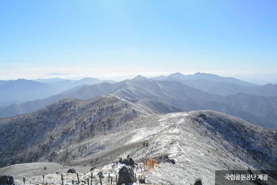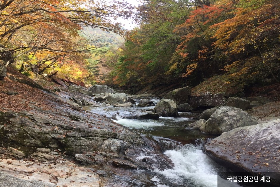 The area of Deogyusan National Park stretches out from the southern ridges of Sobaeksan Mountain, covering regions within four different counties in Gyeongsangnam-do and Jeollabuk-do. The park is nestled in Deogyusan Mountain, Korea's 4th tallest mountain with the summit reaching an elevation of 1,614 meters. The mountain is blessed with a 36-kilometer valley dotted with several scenic points, ponds, and waterfalls.