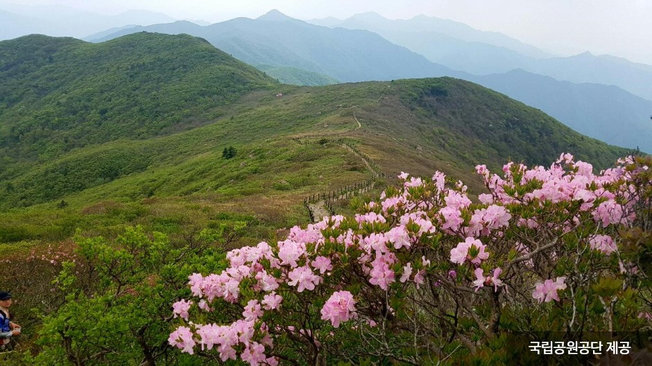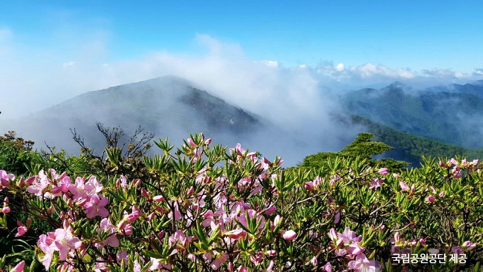 The mountain contains prestigious cultural heritages, such as Jeoksangsanseong Fortress (Historic Site No. 146) and the Hanging Painting of Anguksa Temple (Treasure No. 1267) to name a few. It is also home to diverse wildlife animals and plants. The mountain's beauty can be enjoyed all year round, with royal azaleas in spring, a colony of daylilies in summer, colorful autumn foliage in fall, and a white snowy mountain vista in winter.