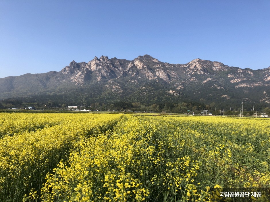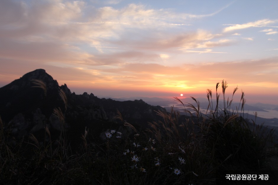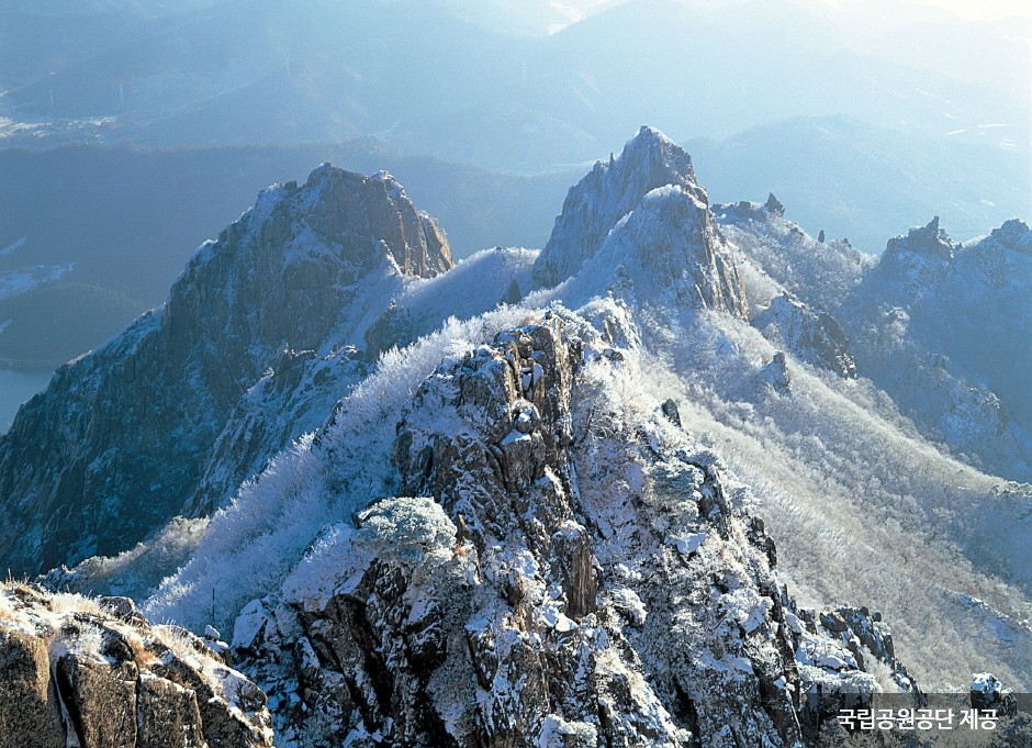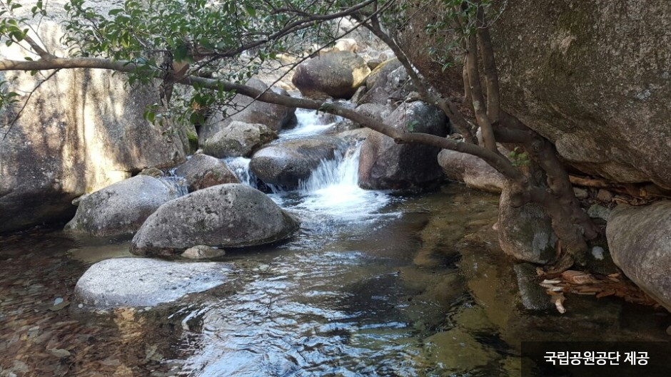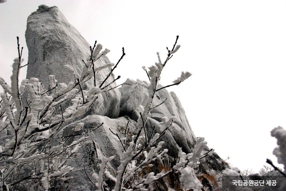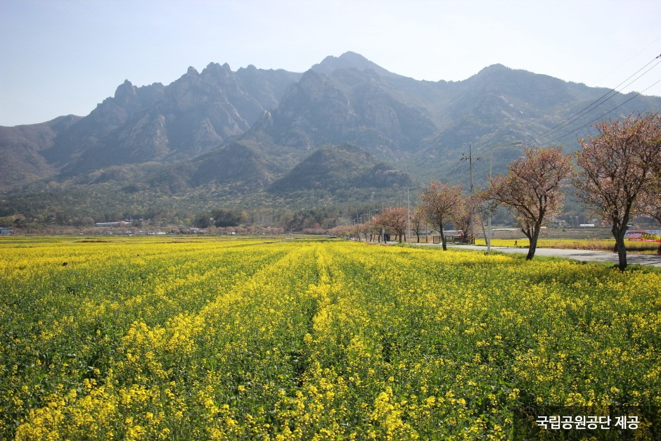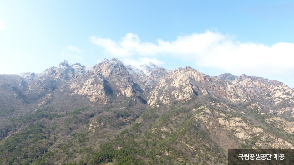 Wolchulsan Mountain, which means "moon rising mountain," is a national park in the southernmost part of Korea with beautiful nature. The mountain towering around Cheonhwangbong Peak at 810.7 meters above sea level stands out even more due to the flat land around it. The unique rock formations look differently depending on the angle, as a human face or animal shape, exuding overwhelming grandeur. More than 700 plant species and 800 animal species inhabit the area, and a subtropical forest and a warm-temperate forest coexist, making it very valuable to preserve. The ridge from the Cheonhwangsa Temple site or Baramgyegok Valley to Cheonhwangbong Peak, Gujeongbong Peak, and Dogapsa Temple is the main trail, which takes about six hours. The course’s most exciting point is the 120-meter high and 54-meter long red suspension bridge that offers a picturesque view of Wolchulsan Mountain and the fields and paddies under the mountain.