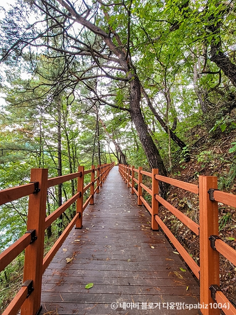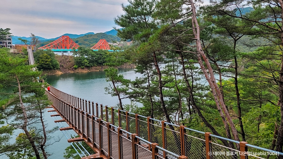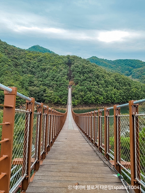 Near one of Korea's Scenic Spot, Oksunbong Peak, Oksunbong Suspension Bridge provides visitors with a thrill stretching 222 meters long, 1.5 meters wide. The Deck Road and trekking trail made of palm tree mat completes the total length of 944 meters. Visitors can also easily get to Cheongpungho Lake and Oksunbong Peak.