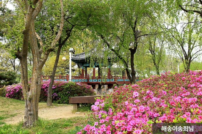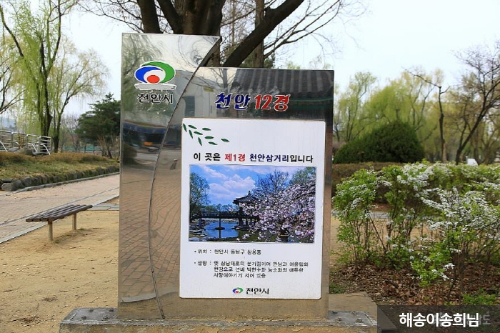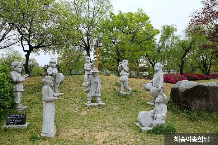 The Cheonan Three-way Intersection Park (Cheonan Samgeori Park) used to be a three-way junction that divides into the road to Seoul in the north; Daegu, Gyeongju, and Dongnae in the southeast; and Jeonju, Gwangju, and Mokpo in the southwest. In the Joseon dynasty, the intersection served as a major division point, with travelers of different classes, from wealthy officials to humble scholars, stopping by to take a break on their way. Many legends and enjoyable folk songs, known as heungtaryeong, originated from this area. This significant junction was developed into a park by planting trees, rearranging facilities, and holding cultural events to honor the site's history and attract visitors.