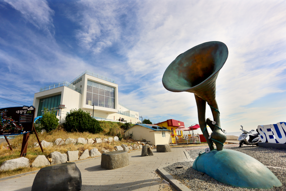 Its name, Seuldo ("seul" meaning the Korean stringed instrument geomungo), was given as the sound of wind and waves hitting the rock island is said to mimic the sound of geomungo. In fact, the sound of waves hitting the island is so good that it is called seuldomyeongpa or the resounding of waves.