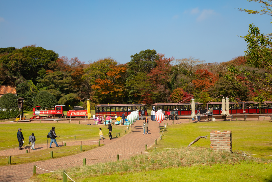 Eco Land Theme Park is built in the 1 km² Gotjawal primeval forest. Visitors can explore around in a train that looks like an 1800s steam-powered Baldwin train. The seven Baldwin train look-alikes (Lincoln Train) operated in the park were specially ordered and manually manufactured in the UK. In the large Gotjawal forest with railway trails, visitors can see a variety of plants, animals, and insects living in the mysterious Gotjawal forests, while touring around by special train. It also has a lake for visitors to experience the ecosystem of the forest, take a walk and enjoy a picnic. Besides, there are many things to enjoy including Eco Bridge, Eco Windmill, Picnic Garden, Kid’s Town, Eco Road, Bare Foot on Scoria, Floating Café, and topiary artworks.