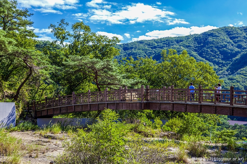 Sanjeonghosu Lake is surrounded by the Myeongseongsan and Gwaneumsan Mountains. Its name refers to its location, like a well ("jeong") deep within the mountains ("san"). The lake was originally built as a water source for agriculture. It is circled by a 3 kilometer-long trail, and there is a silver grass habitat in the middle of a hiking trail leading to the summit of Myeongseongsan Mountain. Family-friendly facilities like snow sledding slopes and hot springs can also be found. Nearby tourist sites include the Hantangang River, Herb Island, Art Valley, and the Korea National Arboretum.