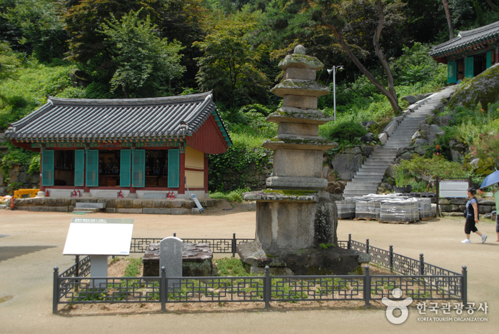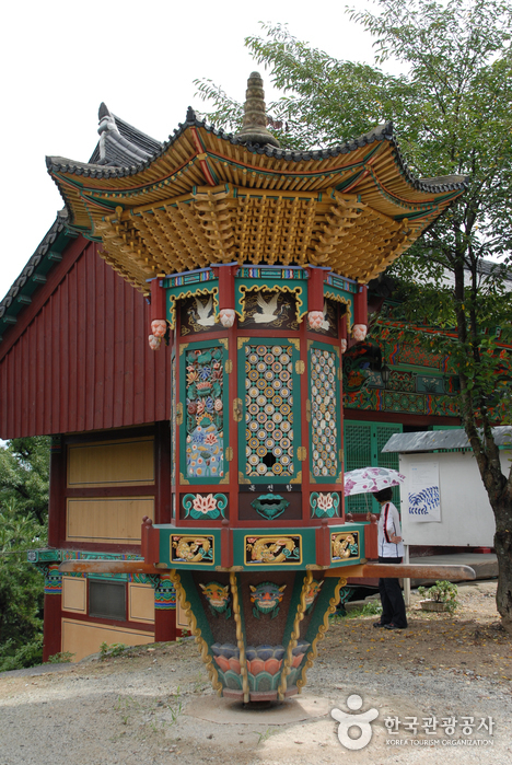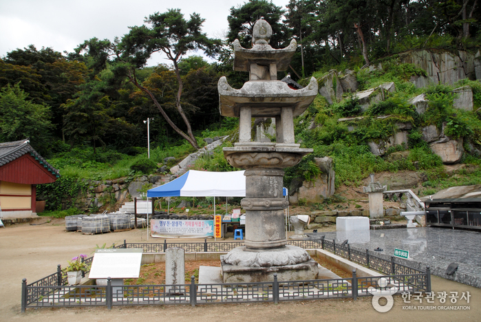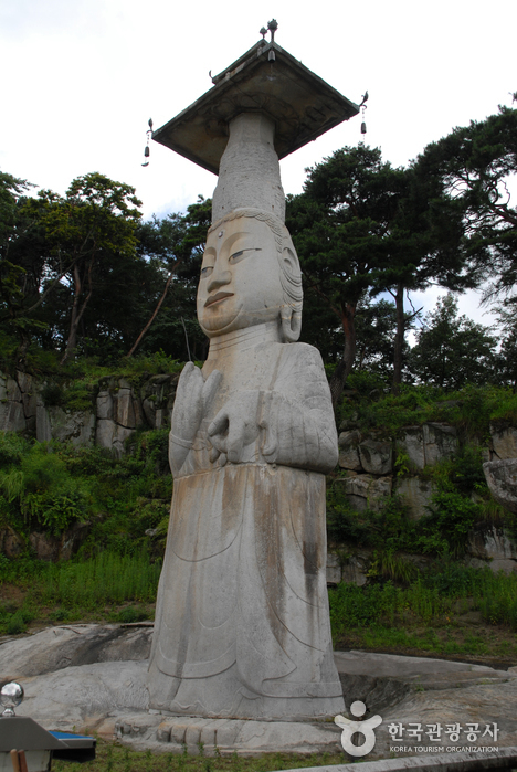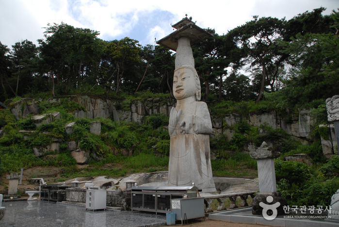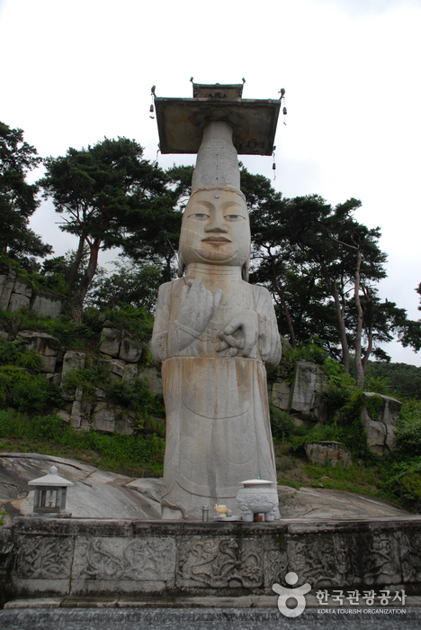Gwanchoksa Temple in Nonsan, Chungcheongnam-do is located at the foot of Banyasan Mountain (100 meters in elevation). This temple enshrines a Seokjomireukbosalipsang Buddha (Treasure), which was built over the course of 38 years, beginning in 967 during the Goryeo period. According to legend, while a lady was picking fernbrake on Banyasan Mountain, she heard a baby crying. When she went over, there was no baby but instead was a large rock sticking out from the ground. Upon hearing this story, the government ordered a Buddha statue to be made from the rock. This Buddha statue, widely known as ‘Eunjimireuk Buddha,’ is the largest stone Buddha in Korea (18.12 meters in height, 9.9 meters in girth, 1.8 meters in the length of ears, 2.43 meters at the height of crown). There are many other cultural heritages in this temple and every April, a splendid cherry blossom tunnel stretching from Nonsan to Gwanchoksa Temple is at its peak.