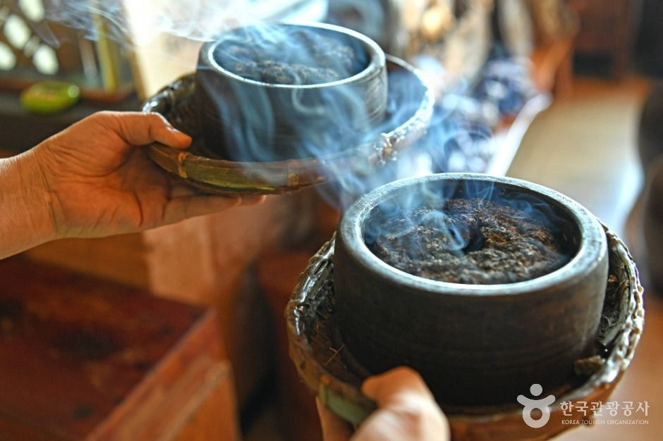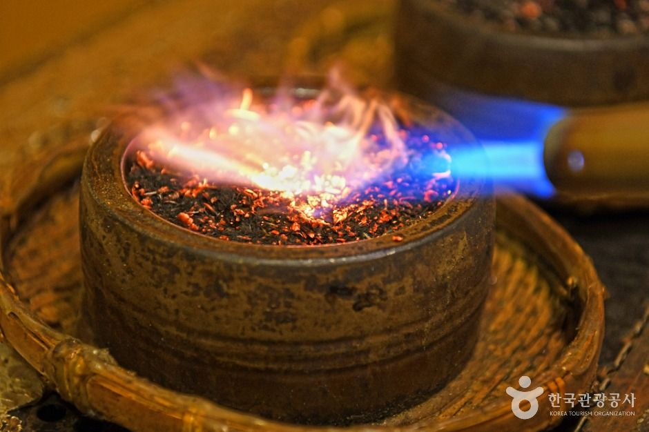 Ganghwa Sajabalssuk, a type of mugwort native to Ganghwado Island, is known for its rich aroma and high vitamin A content. Yackseokwon offers immunity-strengthening programs using this special herb believed to help prevent chronic illnesses. “Raise Your Body Temperature by 1°C Project” is a signature course, which involves yoni steaming (mugwort steam sitting bath) and thermal moxibustion to gradually warm the body. Just an increase of 1 degree in body temperature is said to boost immune function, increase basal metabolism, and improve blood circulation. The program is offered by reservation only and accommodates up to 25 people per session. The 100-minute experience begins with 40 minutes of yoni steaming, followed by 30 minutes of abdominal heat therapy and 30 minutes of lower back heat therapy. Participants are also served a rich herbal tea brewed with Ganghwa Sajabalssuk.