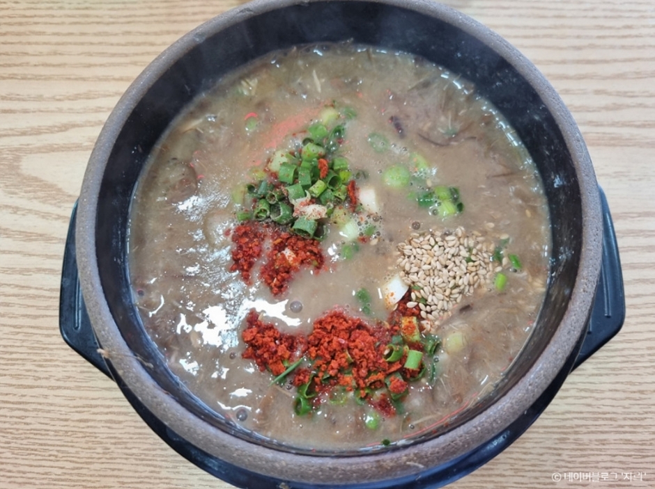 Ujin Haejangguk, located near Seomun Sageori (intersection) in Jeju City, specializes in haejangguk (hangover soup). It is so popular that visitors often line up to secure a seat. The restaurant's signature dish is gosari haejangguk (bracken hangover soup), made with bracken and pork. Other favorites on the menu include sagol haejangguk (beef bone hangover soup) and momguk (seaweed soup).