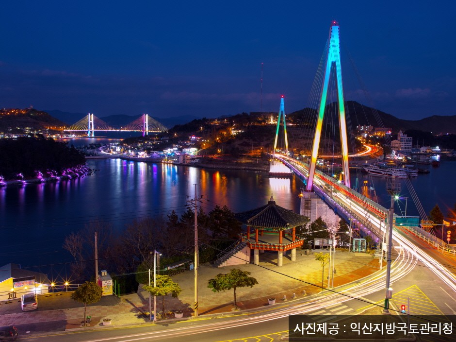 Dolsandaegyo Bridge in Yeosu connects Dolsan Island to the mainland, and is a representative attraction of the city, lit up in many colored lights at night. The island of Dolsan is said to be a fortress in the ocean, and protected the nation from invaders and pirates during the Joseon dynasty. Construction on the bridge began in 1980 and was completed in 1984, with Dolsan Park being founded on the hilltop above the bridge in celebration of the bridge opening.