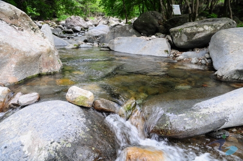 Eobigyegok Valley, originating from Eobisan Mountain, is aptly named 'Eobi' ('flying fish') as visitors can often witness fish leaping from the valley's crystal-clear waters. The constructed walkway, meandering alongside fountains and through valleys, provides stunning scenic views. In winter, the valley transforms as a 25-meter natural ice wall forms around the palgakjeong pavilion, offering a breathtaking spectacle. Nearby attractions such as Yumyeongsan Mountain, Chorongi Dungjimaeul Village, and the Edelweiss Swiss Theme Park also offer unique experiences and are definitely worth a visit.