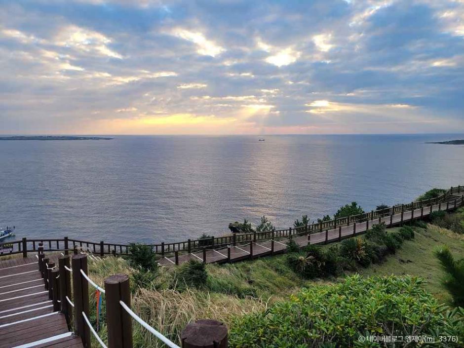 Songaksan Mountain is a mountain formed by underwater volcanic activity, characterized by its dual volcanic cones, which hold significant geological value. Along the Songaksan Trail, hikers can enjoy breathtaking coastal landscapes, including views of Hyeongjeseom Island, Gapado Island, and Marado Island. The trail is not too challenging, making it accessible to all, although it can be windy. The coastal area at the foot of the mountain is also renowned for fishing spots.